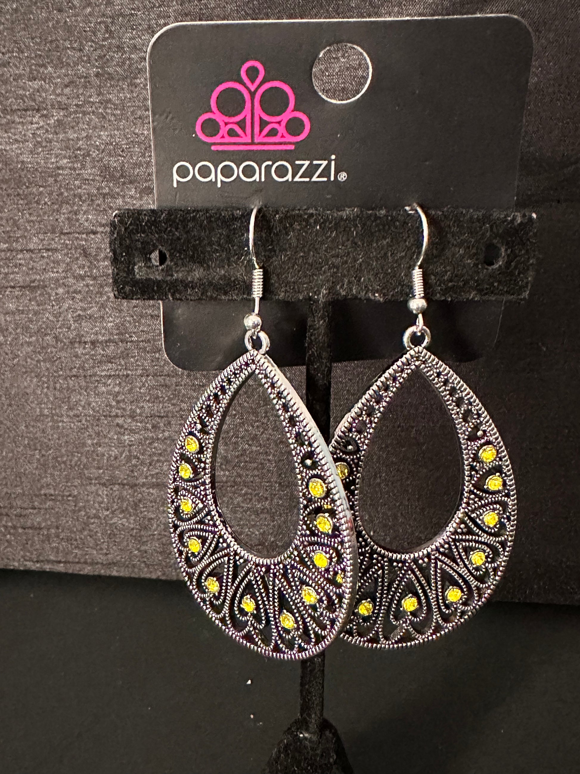 These yellow earrings are so beautiful, the inside is heart shaped with little yellow bling , lightweight and fishhook back