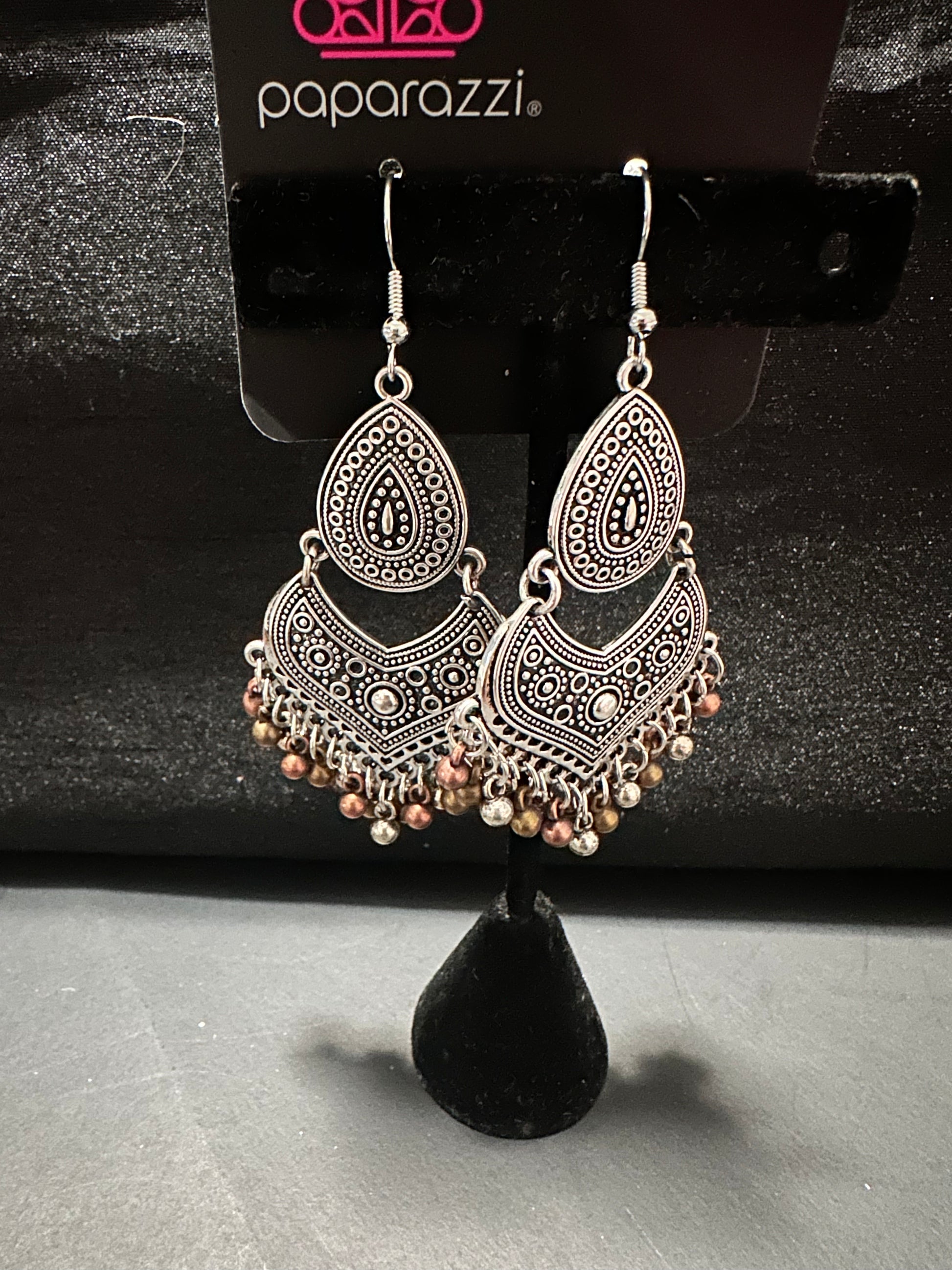I love love love these earrings the have some copper and brass dangling from the bottom lightweight and fishhook